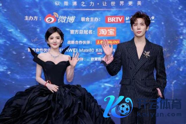 两东谈主在微博之夜合体,女生黑天鹅造型阴凉又优雅,男生则孑然条纹西装,利落又笔挺。