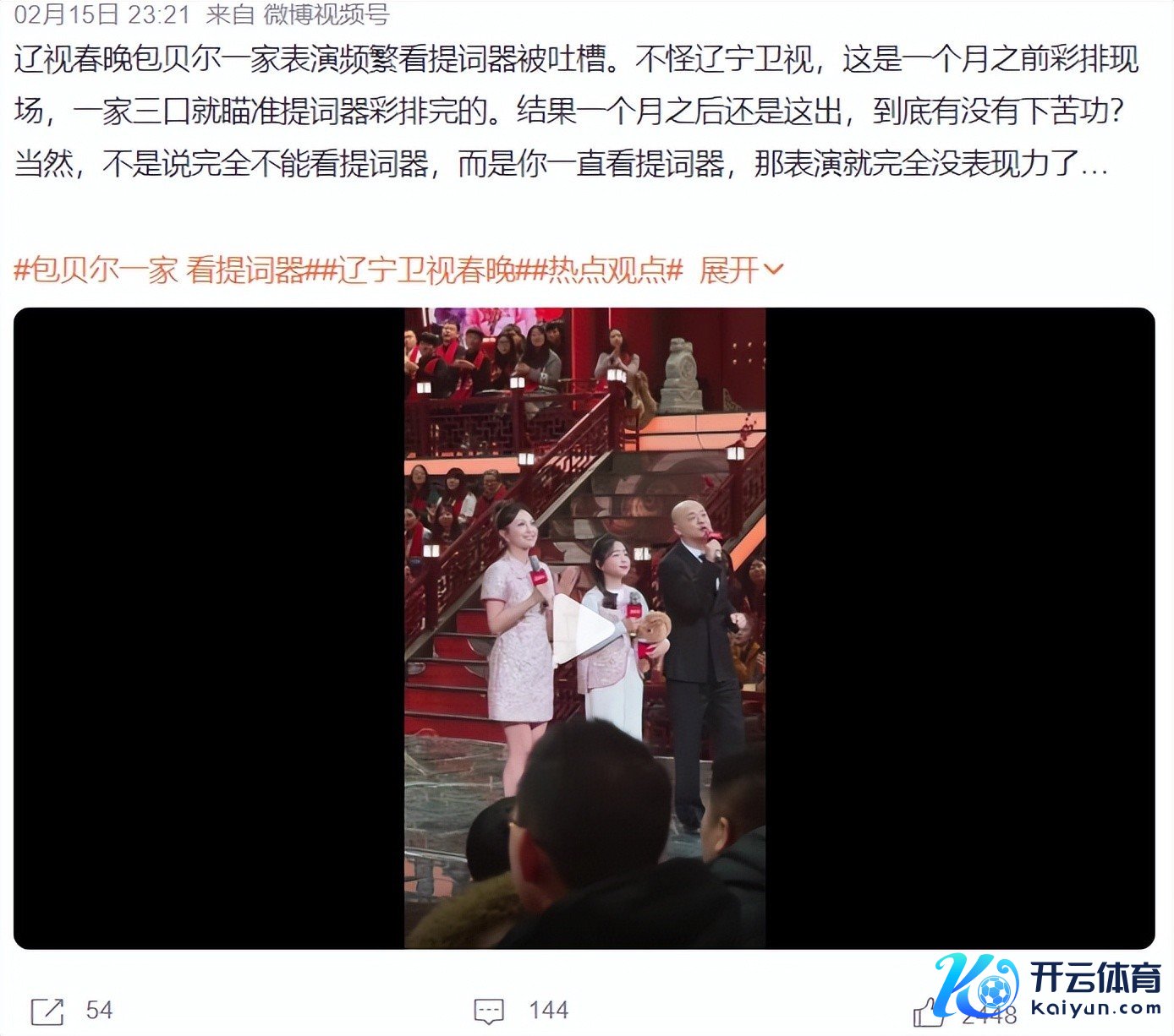 列位读者,除了央视的春晚外开yun体育网,你们看哪个卫视的春晚了?咱们不错发现,各大卫视为了收视率纷纷邀请自带热度和流量的明星,但辽宁春晚,一经寰球的首选,因为每年齐有出圈的小品,但让寰球没念念到,本年辽宁春晚热度最高的话题竟是“包贝尔一家看提词器”,竟让网友们集体破防了,这究竟是怎样回事呢?
