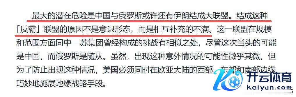 这个想路平直出自布热津斯基 1997 年的《大棋局》,在第二章《欧亚大棋局》 “紧要的选拔和潜在挑战” 一节中,布热津斯基明确写说念:好意思国未来最大的潜在危急是中国与俄罗斯能够还有伊朗结成的大定约,结成这种‘反霸’定约的原因不是说明形态,而是相互补充的起火。